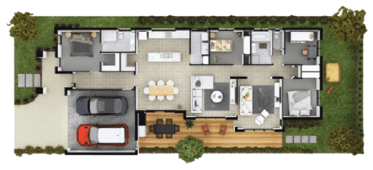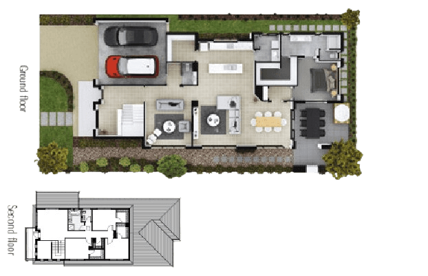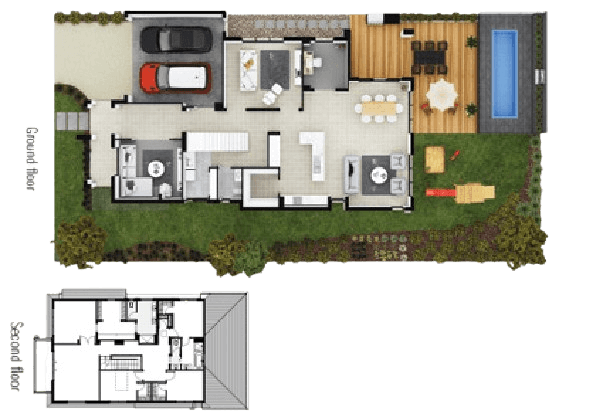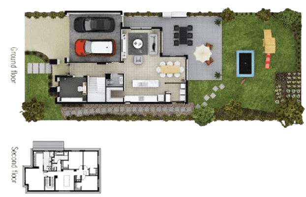 Choosing a double storey design offers you the option of a luxury lifestyle on a compact block. Inside there's space to spare a growing family, plus the long back yard means there's plenty of play room, entertaining space and even room left over for a veggie patch.