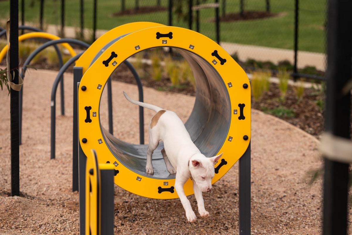A dedicated and fenced dog park, with agility equipment and seating, was added mid-design thanks to resident requests made to the Council.