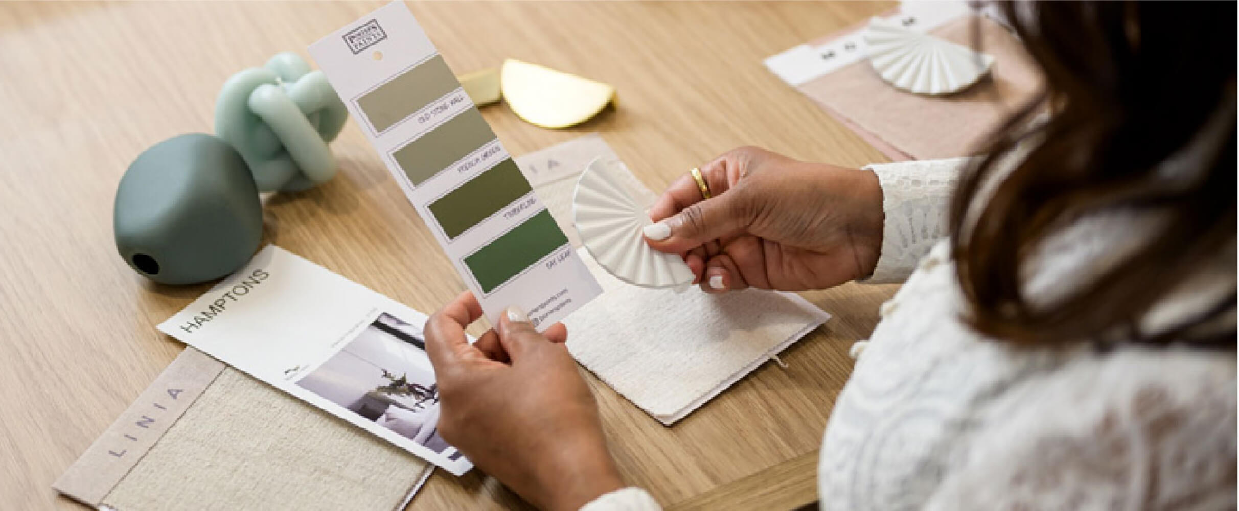Take inspiration from our design references on hand, as well as perusing and touching the colour samples, tones, and textures available for your home. Seasonal moodboards created by Interior Designer Amy Saward include tactile materials to help you imagine the many possibilities for your new home.